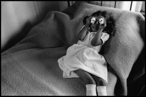 Mexico, Mexique, 1er novembre 1984. Une petite fille joue avec des crânes, qui font partie du rituel du Jour des Morts. Abbas © Fonds Abbas Photos/Magnum Photos